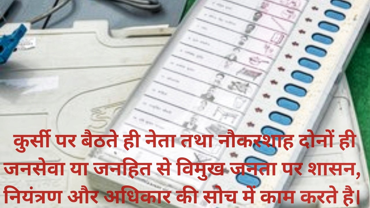 यही कारण है भी कि ईवीएम के लिए संदेह हो रहा है। मतदान की वीवीपीटी और रिकार्ड रूम की सच्चाई को कोई सीसीटीवी सीधे प्रसारण पर उपलब्ध नहीं होती मगर मतदाता के मत का संरक्षक बने आयोग को मन में ही जनता के कठघरे के पाया जा रहा है। व्यवस्था की कमियों और खामियों का कष्टकारी परिणाम जनता को ही जीवन भर सहन करना पड़ता है। न्यायपालिका से समय पर न्याय नहीं हो पाता और पत्रकारों से जनता नाउम्मीद हो चुकी है। वैसे भी पुलिस की तरह ही मीडिया भी जनता का रहा नहीं और कानून से पहले पदस्थ सरकार का मुलाजिम माने जाने लगा है।