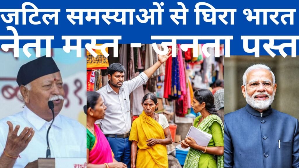 इन दिनों भारत कई जटिल समस्याओं से घिरा पड़ा है, और यह समस्या स्वयं सरकार ने पैदा की है। 2014 के बाद से अब तक केवल हिंदुत्व के नाम पर वोट बैंक बनाने के लिये धर्मिक तुष्टिकरण कर भारत की आम जनता को हाशिय पर ला कर खड़ा कर दिया, 10 वर्षों से अब तक अपनी सरकार को झेलती जनता को अपने गलतियों का एहसास होने लगा, धर्म बचाने के नाम पर जहां युवाओं में 62,% की बेरोजगारी बढ़ी वहीं महंगाई में लगभग 2013 से अबतक 50.5 % की बढ़ोतरी हुई है। परन्तु सरकार में बैठे मनुवादी विचारधारा के गिने चुने लोग मंदिर माफियाओं, शराब माफियाओं और भूमाफियाओं को बढ़ावा दे कर जहां एक ओर पूंजीवाद को बढ़ावा देते हुए निम्नलिखित पूंजीपतियों को मजबूत बना कर उनके हांथों भारत की अर्थव्यावस्था संचालित करने की शक्ति प्रदान कर रहे हैं जिसके कारण भारतवर्तमान में कई जटिल परिस्थितियों का सामना कर रहा है, जिनमें से कुछ प्रमुख चुनौतियाँ इस प्रकार हैं: