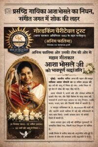 प्रसिद्ध गायिका आशा भोसले के निधन पर गोल्डकिंग चैरिटेबल ट्रस्ट द्वारा शोक सभा का आयोजन